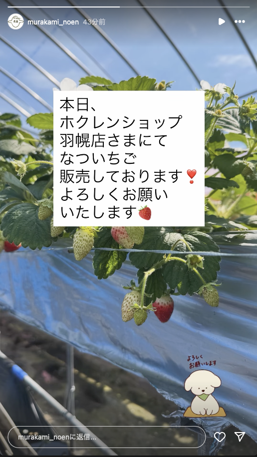 本日ホクレンショップ羽幌店で夏いちご販売しています ※村上ファーム