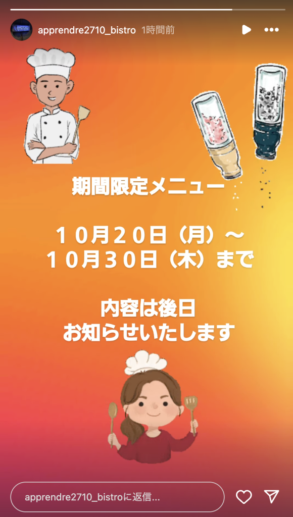 期間限定メニューのお知らせです ※ビストロアプランドル