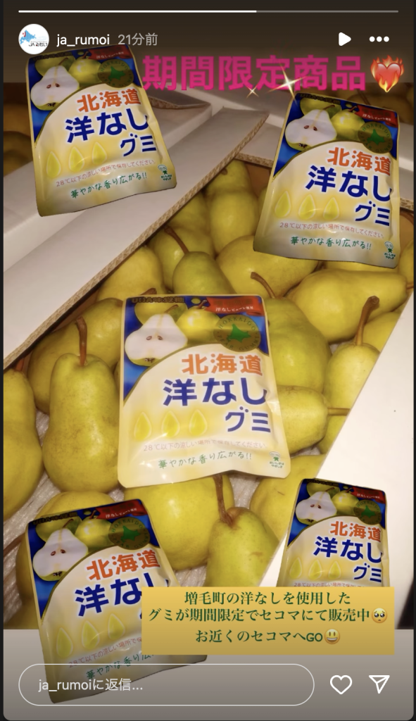 増毛町の洋梨を使用したグミが期間限定で販売 ※JAるもい