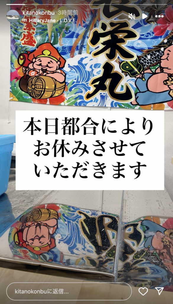 本日、都合によりお休みいたします ※北のこんぶ小屋