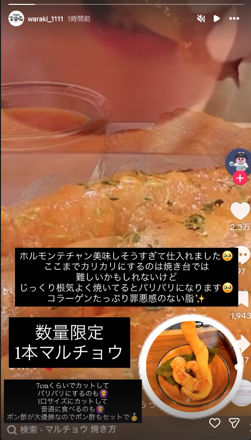 ホルモンテチャン仕入れました @焼肉酒場笑楽喜