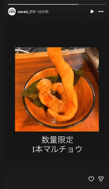 数量限定!1本マルチョウ @焼肉酒場笑楽喜