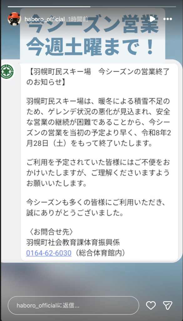 羽幌町民スキー場 今シーズンの営業終了のお知らせ @羽幌町