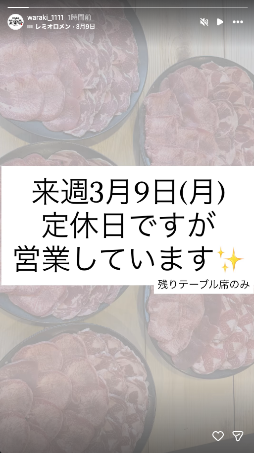 3月9日営業しています @焼肉酒場笑楽喜