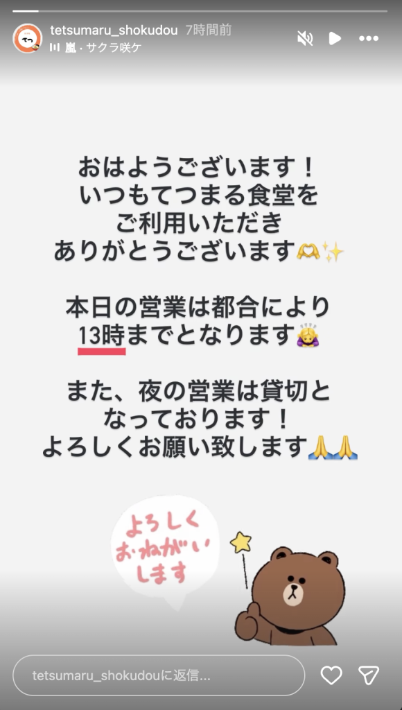 本日の営業について @てつまる食堂